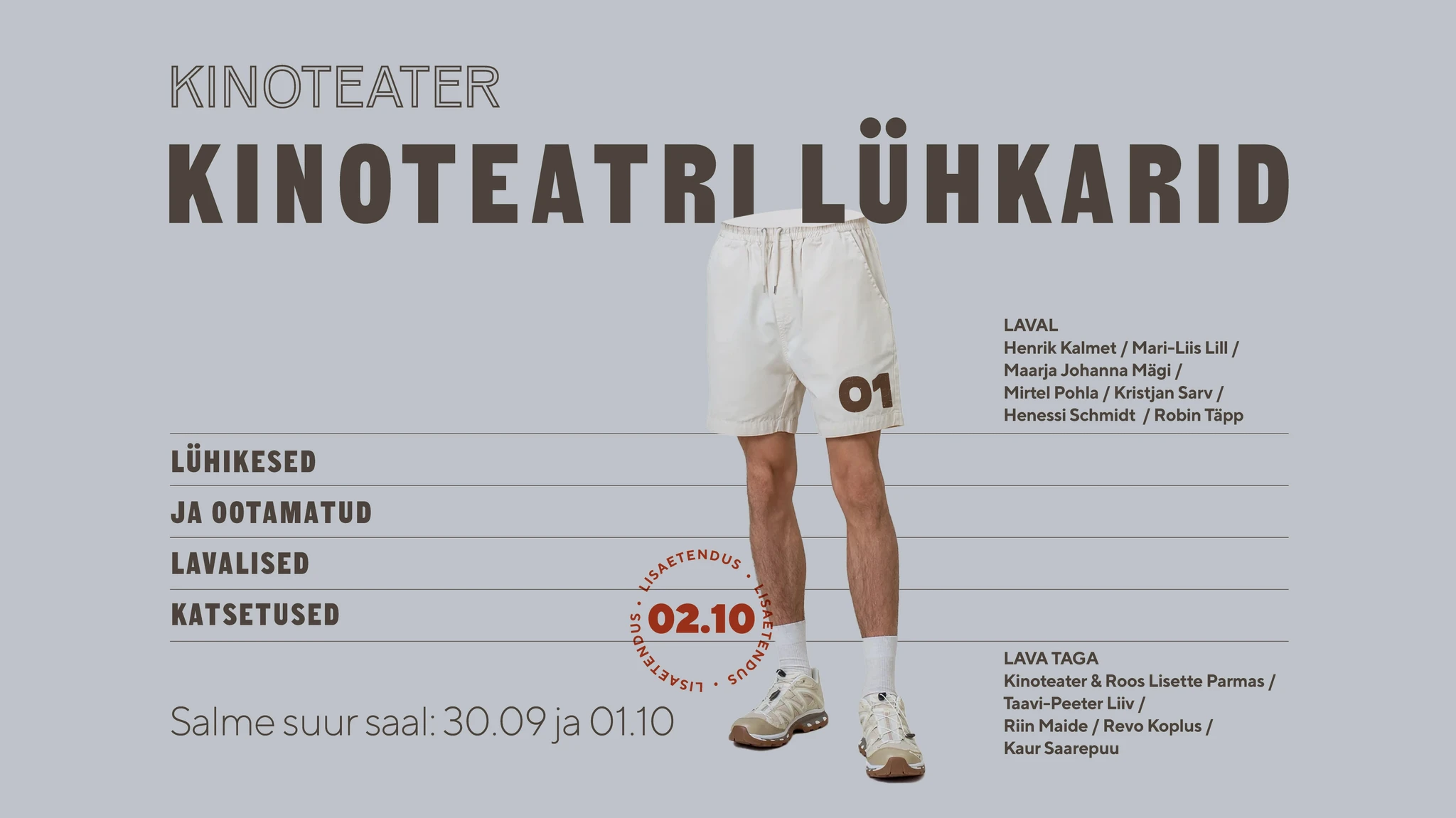Kirjutajad: Kinoteater, Madleen Maria Kirja, Mari-Liis Lill, Roos Lisette ParmasNäitlejad: Henrik Kalmet, Mari-Liis Lill, Maarja Johanna Mägi, Mirtel Pohla, Kristjan Sarv, Henessi Schmidt, Robin Täpp (Teater Nuutrum)Kunstnikud: Joosep Ehasalu, Revo Koplus, Taavi-Peeter Liiv, Riin Maide, Kaur Saarepuu